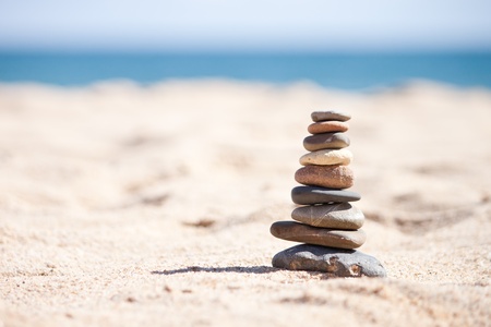 pyramid of stones laid out in a row on the sand background