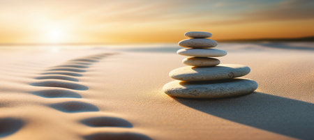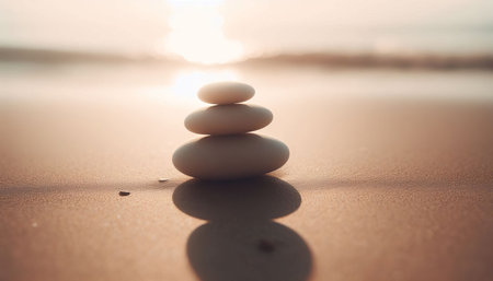 Zen stones on sand serene and balanced composition of tranquil stones in a zen garden