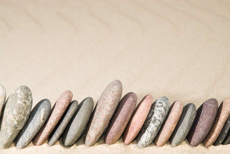 Row of flat stones on sand background