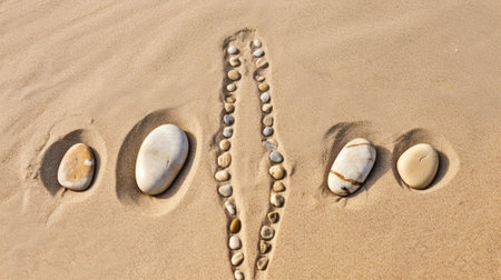 Zen Harmony: Pebbles Arranged in a Line on a Sandy Beach