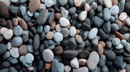 Closeup of river rocks, displaying diverse natural colors and textures, creating a beautiful and serene display