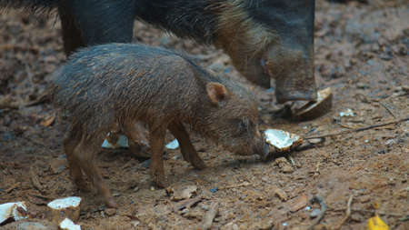 Baby south american tajacu eating at zoo in Puyo, Ecuador