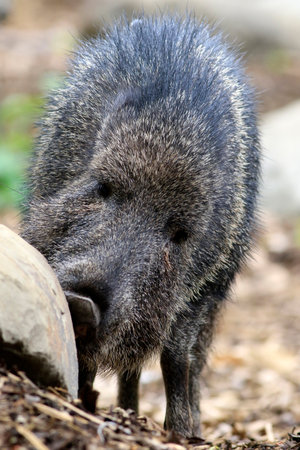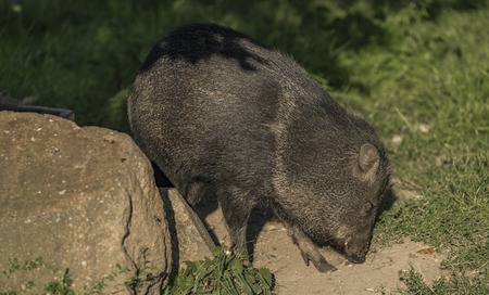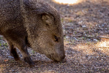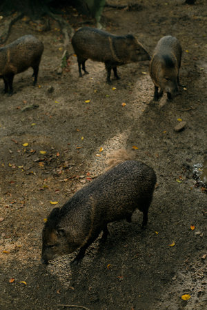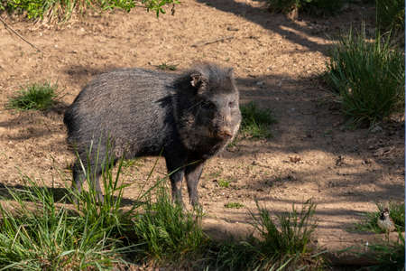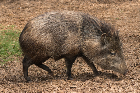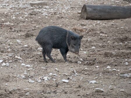 Collared peccary (Tayassu tajacu or Pecari tajacu) looking for food in the dirt