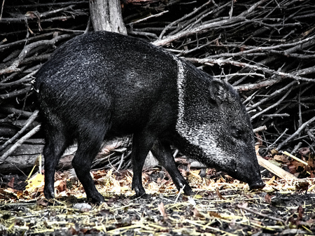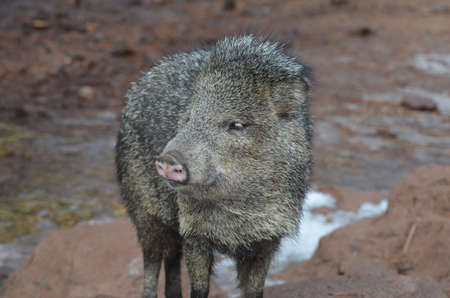 Closeup of Collared Peccary Pecari tajacu seen in profile. high quality photo