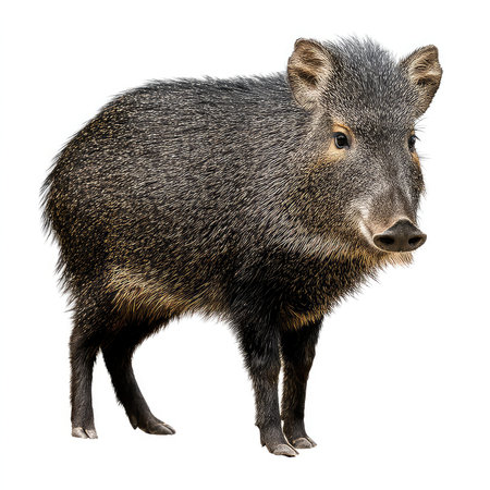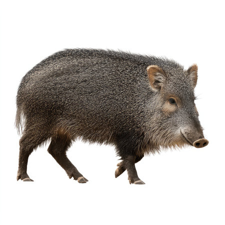 This high-quality cutout features an isolated javelina, also known as collared peccary. Ideal for wildlife themes, the striking details capture the essence of this fascinating mammal in its natural habitat.