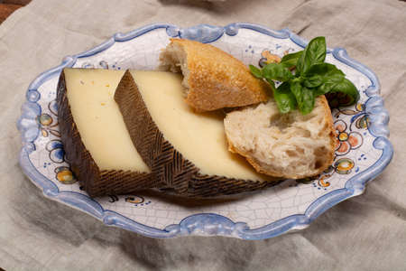 Spanish cheese manchego made from sheep milk close up