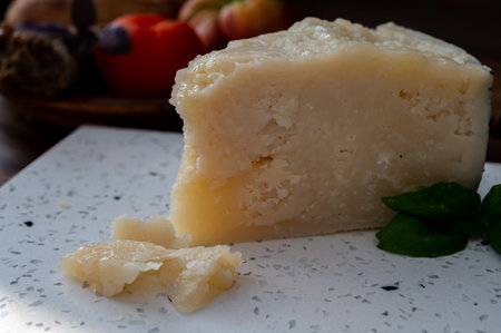 Cheese collection, piece of hard Spanish iberico cheese close up