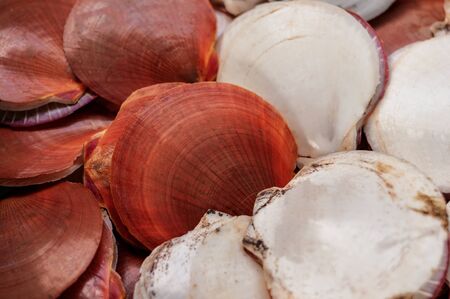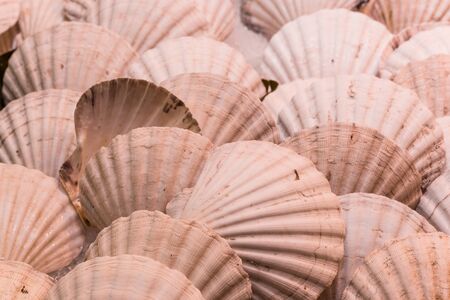 Heap of scallop shells as a background texture