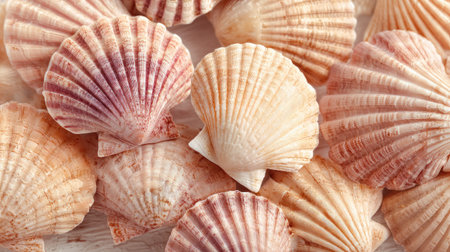 AI Generated. Beautiful collection of scallop shells showcasing unique textures and colors