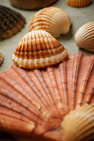 Seashells background. Close-up of sea shells.