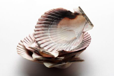Empty scallop shells on white background