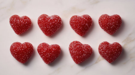 Delight in these vibrant red heart-shaped gummies perfect for sharing love during special occasions, adding sweetness and joy to any celebration with their delightful chewy texture.