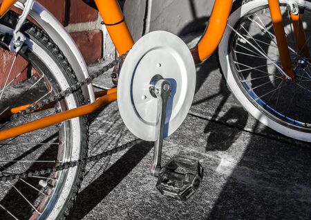 Vintage orange bicycle pedal in the street