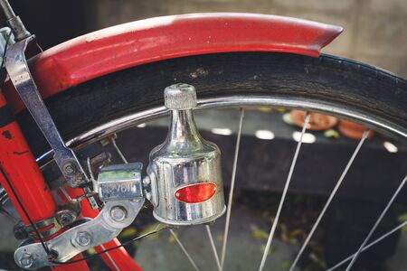 Dynamo red old bicycle and old bike tires background