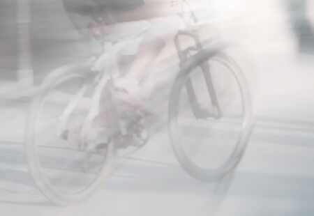 Cycling in the city. Urban cycling. Motion blurred people riding bicycles in the city