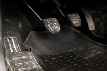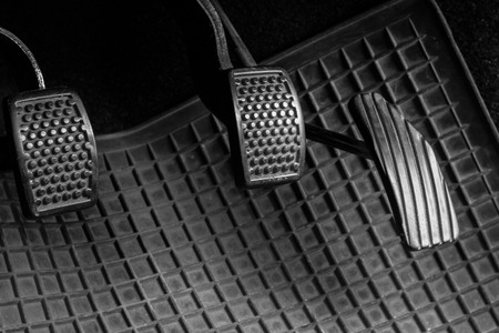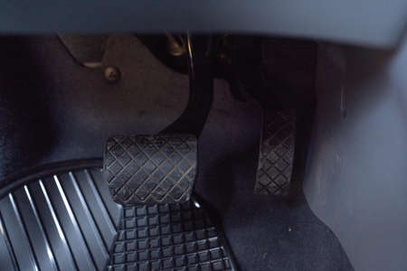Accelerator pedal and brake pedal dirty of driver cockpit in a car.