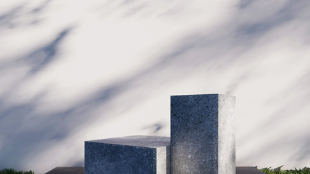 3d podium with shadow and texture wall for product presentation. 3D rendering.