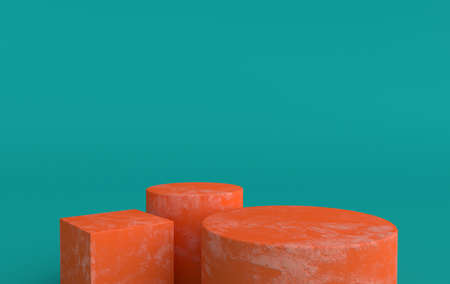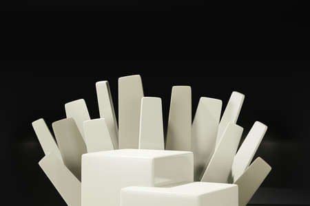 Podium, pedestal or platform, background for the presentation of cosmetic products. 3d podium. Place for ads.3D rendering podium geometry with elements. Product presentation blank podium.