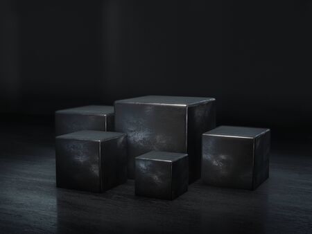 Empty cube or square box podium with studio background. Concept scene stage showcase for new product, promotion sale, banner, presentation, with copy space. 3D rendering