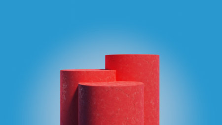 Cylinder concrete pedestal podium steps on blue background for presentation mockup template.Geometry exhibition stage mockup concept.3D rendering illlustration.