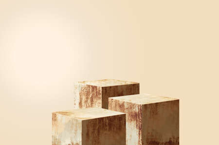 Rusty metal podium product display, Platforms presentation mock up show cosmetic stage pedestal design, Vector illustration