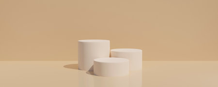 3d rendering of minimal scene of white blank podium with earth tones color theme. Display stand for product presentation mock up and cosmetic advertising. Cylinder stage in ornament simple design.