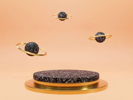 3D rendering luxury marble with gold podium geometry. Abstract geometric shape blank podium