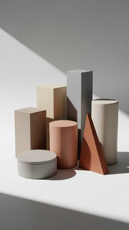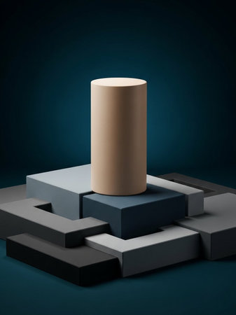 podium empty with geometric shapes in gray composition for modern stage display and minimalist mockup ,abstract showcase background ,Concept 3d illustration or 3d rendering