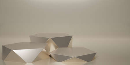 Abstract background with hexagon shape podiums for products presentation or exhibitions. Composition of different geometric objects with copy space.