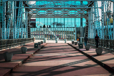 Highland Bridge, a pedestrian bridge connecting the LoHi neighborhood to Downtown Denver. Lower Highlands. Denver, Colorado
