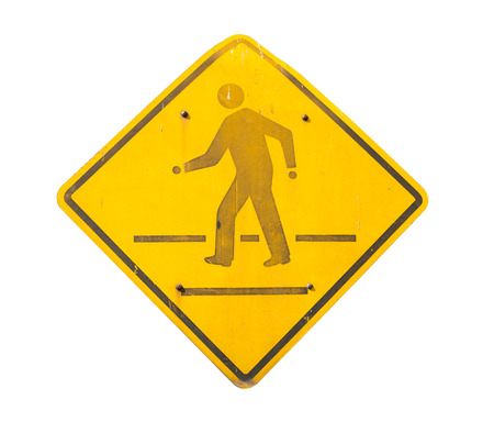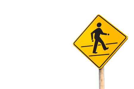 Yellow pedestrian sign street sign in Zicatela Puerto Escondido Oaxaca Mexico.