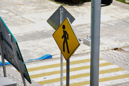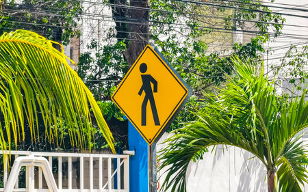 Yellow pedestrian sign street sign in Playa del Carmen Quintana Roo Mexico.