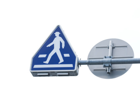 crosswalk sign blue warning pedestrian road crossing. symbol.