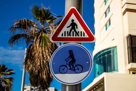 Tel Aviv Israel June 15, 2019 View of traffic sign road in the streets of Tel Aviv in the afternoon