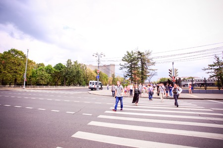 Motion Blur - People crossing the road. Blurry effect to illustrate movement
