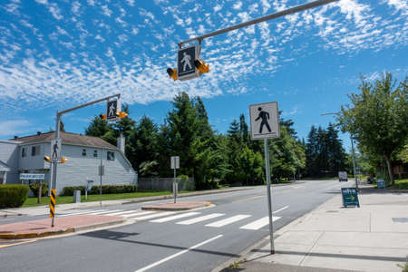 crosswalk in residential area, black and white tone