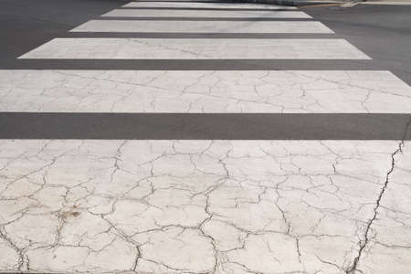 Zebra crossing trespassing with some faded on asphalt road.Background for safety first or transportation concept.