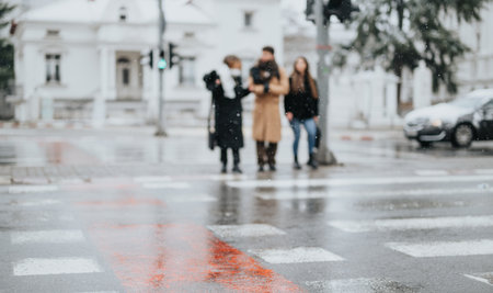 Blurred of People walking on a red crosswalk