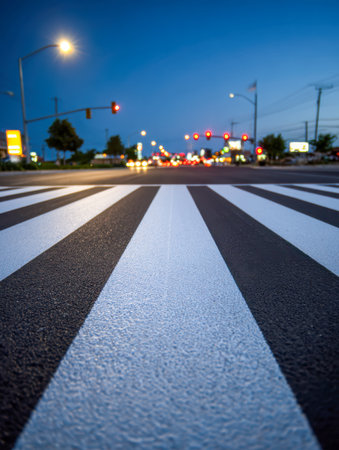 Crosswalk on the road background. Pedestrian crossing on an asphalt road. Crosswalk on the street for safety.