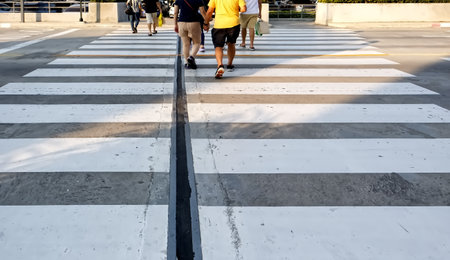 Motion of pedestrian zebra crossing or crosswalk