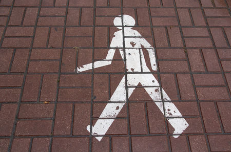 drawn pedestrian symbol on the territory of a pedestrian road, close-up