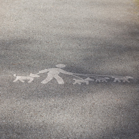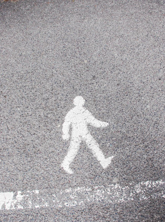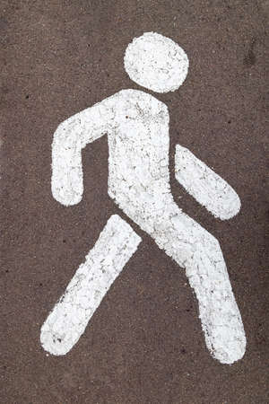 white footpath symbol of walking man, grey asphalt background