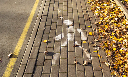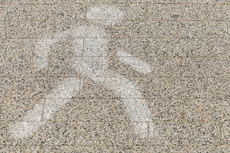Marking on paving slabs in the form of an abstract man. Pedestrian area on the combined sidewalk with a bike path. Abstract background