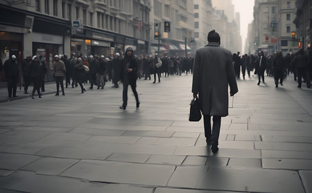 Generative AI, midday population strolling down a busy street