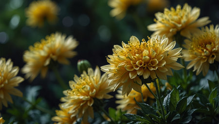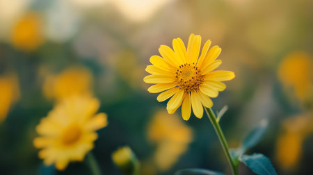 Bright yellow flowers bloom in a lush garden during a warm afternoon, showcasing natures vibrant colors and beauty
