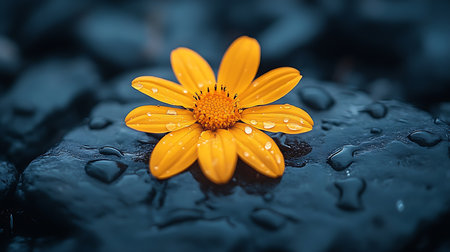 Generative AI Image of Yellow Daisy Flower on Wet Stone after Rain