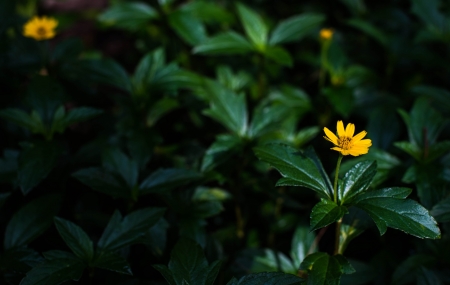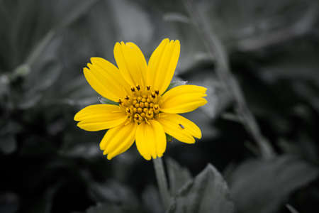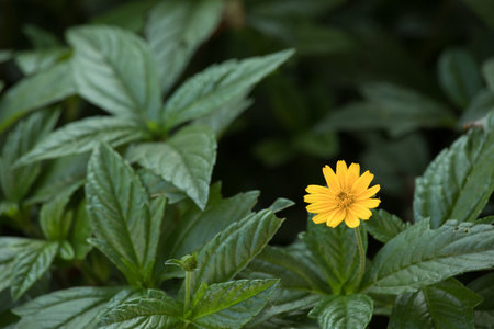 Side shot Of Wedelia Flower ,Foliage, Selective Focus,Moody Theme..