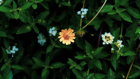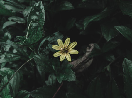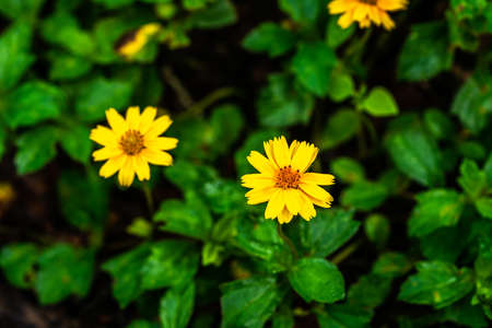 Top shot of Wedelia Flower ,Foliage, Selective Focus, Moody Theme..