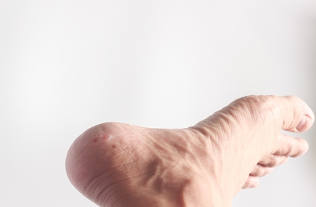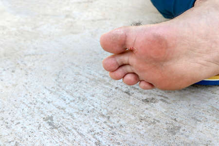 Close up of Calluses. Painful corn on foot. Treatment of corns on the feet