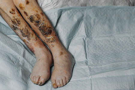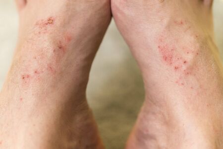 Sores on the legs of a person. Skin disease